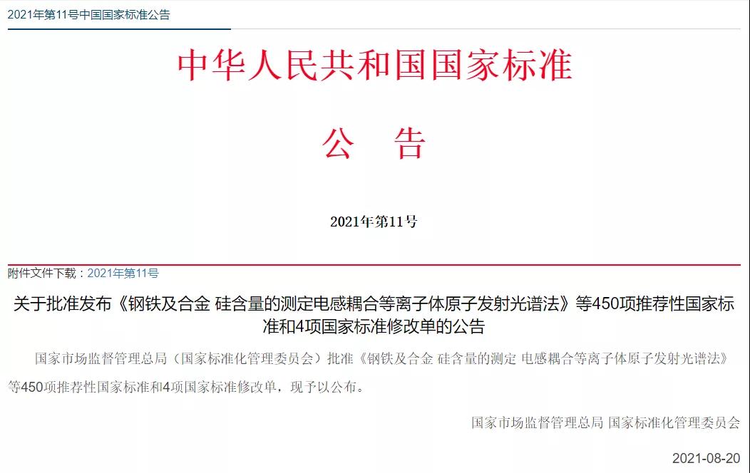 近日,国家市场监督管理总局、国家标准化管理委员会发布2021年第11号中国国家标准公告,快盈VIII股份参与制修订的9项国家标准获批发布,上述国家标准将于2022年3月1日正式实施。
