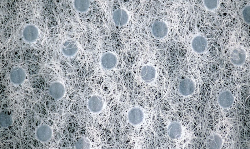 3D液态绵与热风无纺布比较,连续长丝,避免了短纤维纤维头带来的潜在刺激,无序均匀的铺网,避免了短纤维因为梳理,导致不同方向不同程度的摩擦刺激。