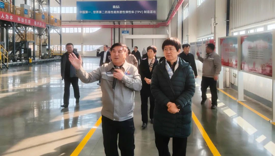 In the Dawn New Materials Exhibition Center, Vice Chairperson Wang Suilian listened to the report on the building of the industrial chain, product chain and enterprise chain, and carefully learned about the industrial layout, scientific research and development, product performance and application fields. "This is my third time to visit Dawn. Every time I come, there are changes and surprises!" She highly appraised the achievements of Dawn in high-quality development. As a national-recognized high-tech enterprise, the core products of Dawn Polymer have won the national manufacturing single-champion, and the production capacity of high-performance thermoplastic elastomer (TPV) ranks second in the world, making important contributions to the development of China's rubber industry. Vice Chairperson Wang Suilian entered the TPV production workshop to observe the high-end, intelligent and green production, and praised Dawn's sense of national and family responsibility of "leading the industry trend and building a national brand".