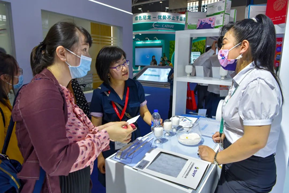 At Dawn’s booth, the electronic screen scrolled and played videos reflecting the company's development history, strategic goals, technological research and development, product performance, and hard-core anti-epidemic situations.