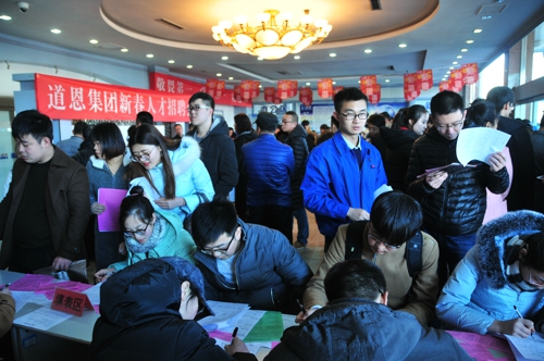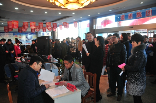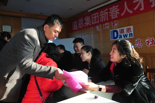 在四楼面试现场,集团公司各职能部门、经营单位摆好“摊位”,招揽适应企业发展的各类人才。在北京工作的龙口籍人士小丁,利用春节探亲之机慕名前来应聘;来自烟台的葛先生,是一位生产管理经验丰富的人才,应聘前就对快盈VIII集团的产业和企业情况进行了解,面试效果颇为理想。