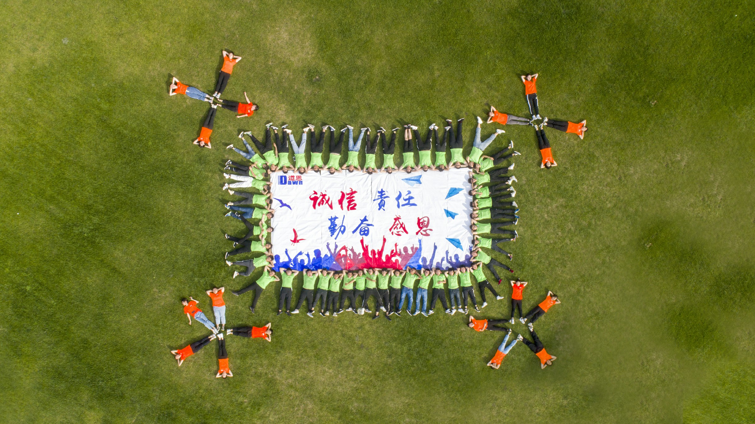 在快盈VIII湖公园,每个人都用手中的画笔,协力为团队巨画增色添彩,直至最后震撼呈现。快盈VIII经典的红与蓝结合,融入“诚信、责任、勤奋、感恩”的核心价值观,企业文化在大家心中生根发芽。