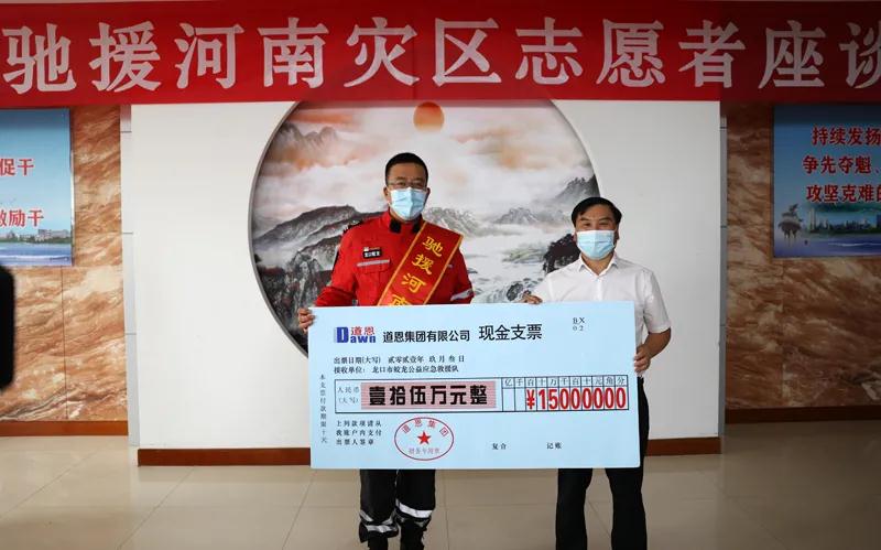 9月5日上午,龙口市在行政中心召开慰问驰援河南灾区志愿者座谈会,市领导吕波、赵树杰、高经宇,市委宣传部、市应急管理局、市民政局,以及龙口市河南商会、龙口市蛟龙公益应急救援队、今日龙口慈善义工队负责人参加会议。快盈VIII集团董事长、总裁于晓宁代表企业捐赠20万元,对两支志愿者队伍表示慰问,以实际行动支持志愿服务和公益事业。
