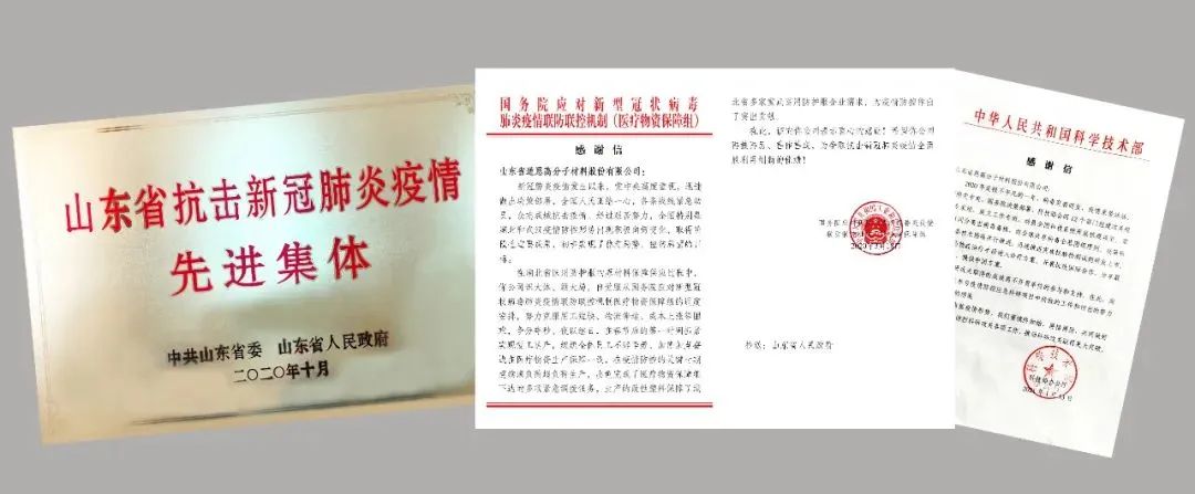 疫情期间,于晓宁董事长带领快盈VIII人第一时间投身防疫物资的生产保供和研发技术攻关,最大限度保障口罩布聚丙烯熔喷专用料供应。同时,与北京化工大学联合承担了国家科技部和北京市科委两项应急研究课题,参与起草《可重复使用民用口罩团体标准》,极大缓解了疫情之下国家急需可反复使用口罩的迫切需求。快盈VIII硬核的抗疫表现,获得了国务院、国家科技部及多个省份的感谢与表彰。