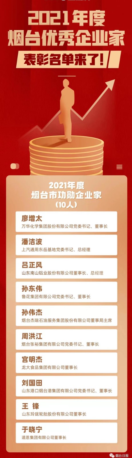 喜报!快盈VIII于晓宁董事长再次荣膺“烟台市功勋企业家”